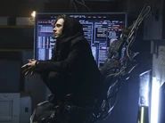 Lead by Dorian, Kennex and Stahl visit Rudy at his lab. Rudy was a renowned hacker in his day, and knows of ChrispinX who is a hacker for hire. Rudy says all the hackers would be at a celebratory party after the big hack, so Stahl suggests she uses Rudy’s old handle, Aphid, to infiltrate. Kennex will accompany her as a backup. Rudy insists they dress the part in order to fit in.